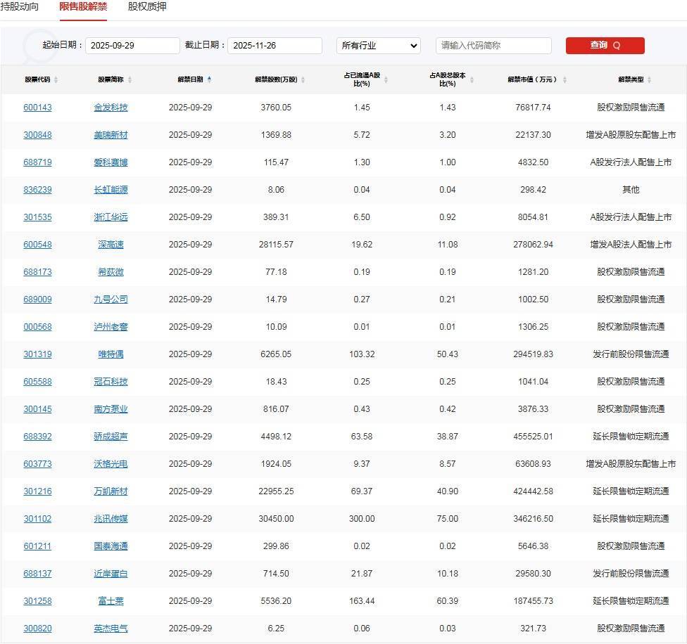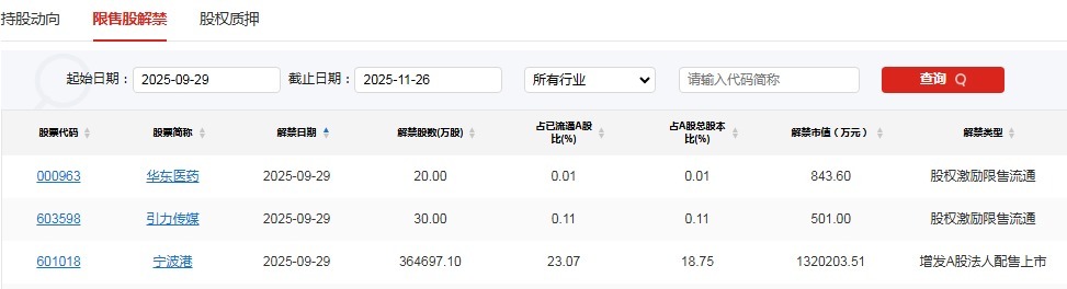 【限售解禁】